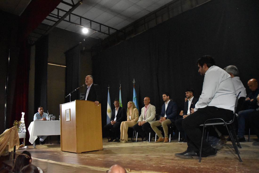 El discurso del intendente Mauro Poletti se extendió por más de diez minutos, donde hizo un homenaje especial por los cuarenta años del regreso a la Democracia, a los héroes de Malvinas y al Presidente Raúl Alfonsín, “Guerra nunca más, y Democracia para siempre”.