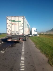 El camión Volvo chocó contra el remolque de un camión Fiat Iveco, cargado con postes quebracho. Ese vehículo era conducido por un masculino de 48 años, oriundo de Santiago del Estero, que resultó ileso.