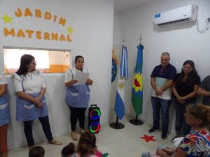 El Jardín Maternal N° 1 fue inaugurado en el año 2019 y actualmente cuenta con 4 docentes, 1 auxiliar y 37 niños de entre 1 y 3 años distribuidos en tres salas en el turno mañana.