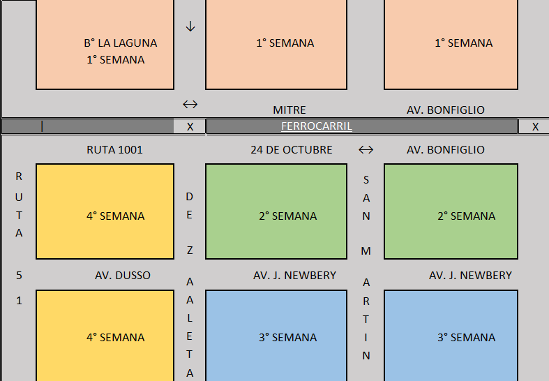 Hasta el viernes 24 de mayo van a recolectar por la zona comprendida entre las vías y la autopista; del 27 al 31 de mayo, desde las vías hasta avenida J. Newbery, tomando como límite la calle De Zavaleta; del 3 al 7 de junio, desde avenida. J. Newbery hasta Héroes Ramallenses de Malvinas; del 10 al 15 de junio, calle de Zavaleta en dirección a ruta 51 (Dusso las dos manos).