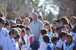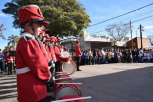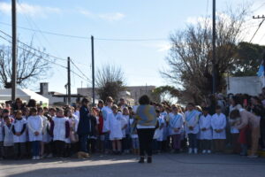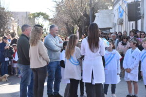Allí estuvo el Intendente Mauro Poletti junto a integrantes de su gabinete, banderas de instituciones educativas y de la sociedad civil. Se contó con la participación de la Banda Popular y actuaron alumnos del nivel inicial y primario.