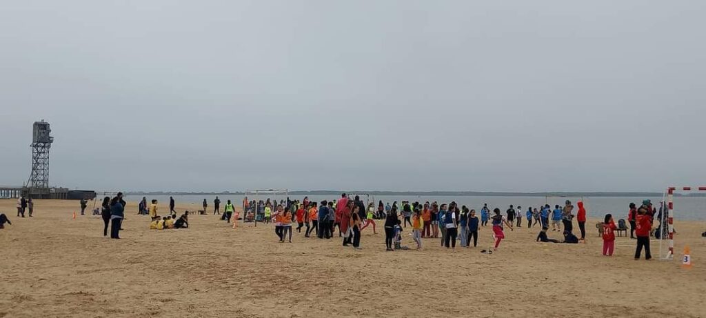 Este miércoles, en la zona de costa de Ramallo el CEF N° 60 organizó la segunda etapa de los Juegos Sociomotores. Se trató de un torneo de Handball Beach del que participaron unos 250 alumnos pertenecientes al 5° año de las escuelas primarias de Ramallo, participaron alumnos de 5to grado de escuela primeras de Ramallo.