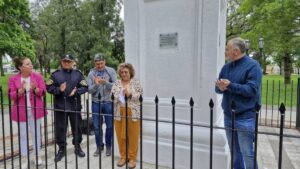 En la mañana de este jueves, el Intendente Municipal Mauro Poletti descubrió una placa en la Pirámide de Mayo que se encuentra en la Plaza Bustos.