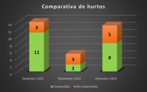 Por otro lado, en cuanto a los hurtos, se registra un aumento en comparación con el mes anterior, pasando de 5 a 13 casos.