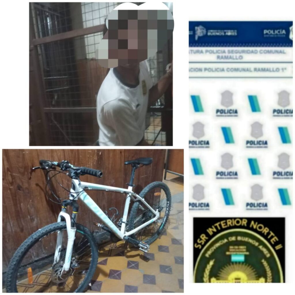 Este viernes, personal policial detuvo a un sujeto de 32 años quien había sustraído una bicicleta. Fue en calle Gomendio y Eva Perón de la ciudad de Ramallo donde fue aprehendido un hombre de 32 años que momentos antes había sustraído una bicicleta Rodado 26 tipo Mountain Bike, sin ejercer violencia. Su dueña, una mujer […]