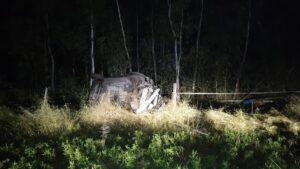 Al lugar se desplazó la unidad de rescate N°28 quien a su arribo se encuentra con el despiste de una camioneta de la marca VW Saveiro. El vehículo se encontraba apoyado sobre su lateral izquierdo con su conductor aprisionado dentro del habitáculo. Mediante herramientas hidráulicas se procedió a extraer a la víctima, un hombre mayor de edad, el cual fue revisado por personal médico quien constata su deceso.