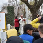 La convocatoria para agradecer y pedirle al Santo del Trabajo fue en la plaza del barrio donde se volvió a colocar una hermita con la imagen de la Virgen. Allí, luego de la bendición y el rezo del Padre Sergio, los vecinos caminaron en procesión hasta la esquina del taller de Pascual Alonso.