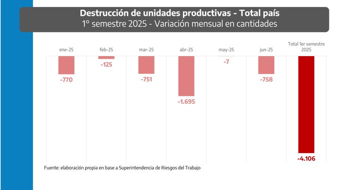 El ministro de Economía bonaerense, Pablo López, volvió a cuestionar al Gobierno nacional y advirtió sobre el deterioro del tejido productivo desde la asunción de Javier Milei. Para graficar su crítica, dijo que en junio se destruyeron 277 empresas en la provincia de Buenos Aires y un total de 1.556 en el primer semestre de […]