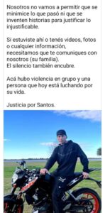 En tanto la familia del joven herido pide a quien pueda aportar datos, videos o fotografías, que se pongan en contacto con la familia.